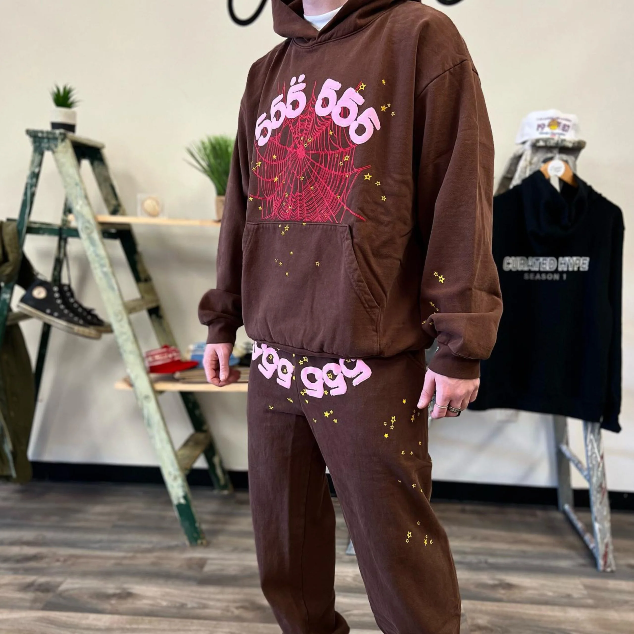 What sets Spider Sweatpants apart is their signature spider-web inspired graphics. The detailed artwork, often placed along the legs or hips, turns a simple pair of sweatpants into a standout fashion statement. This bold visual identity is what makes them instantly recognizable in the streetwear community.